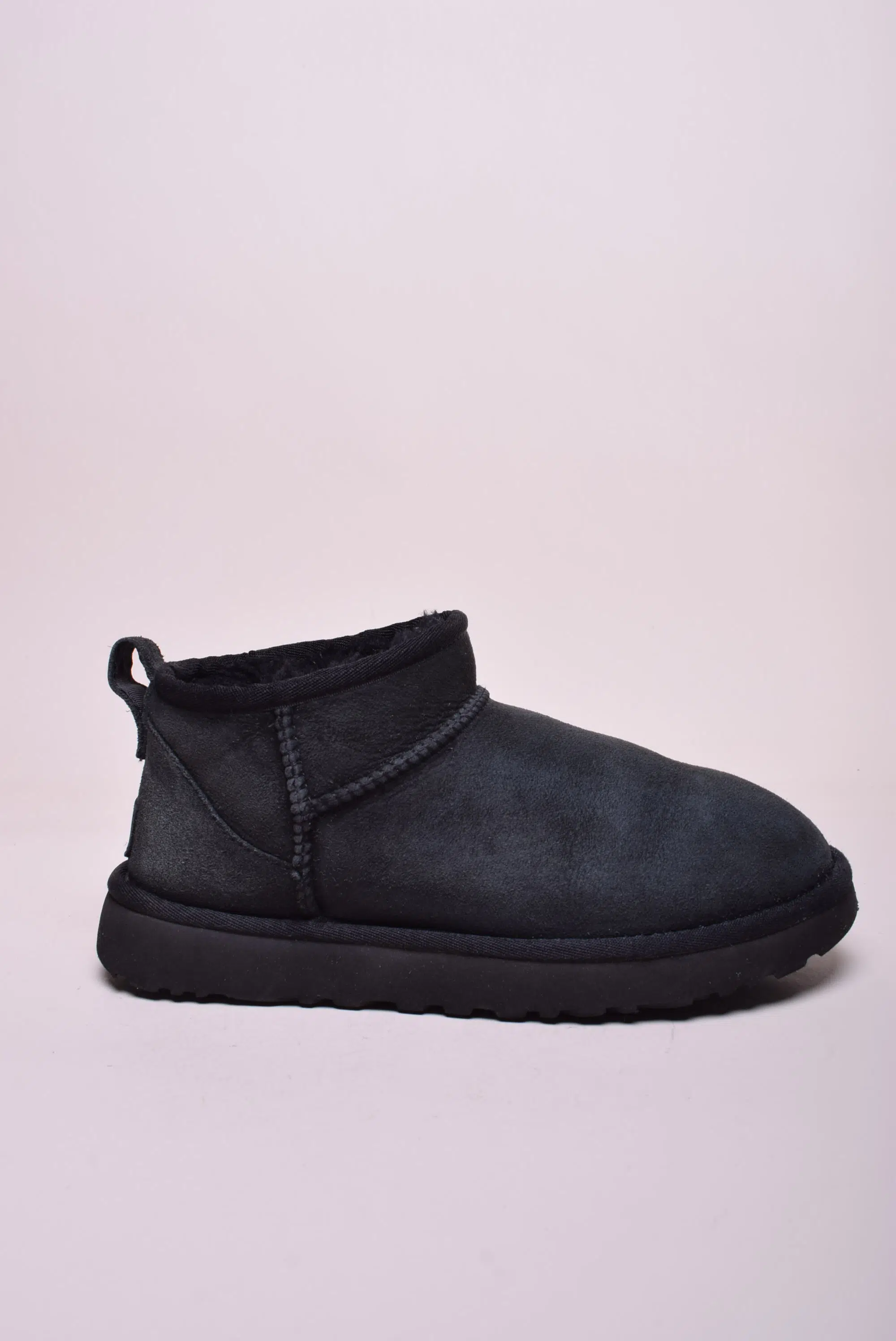 Cizme scurte dama Classic Ultra Mini UGG, Piele naturala intoarsa, Negru, nr. 37
