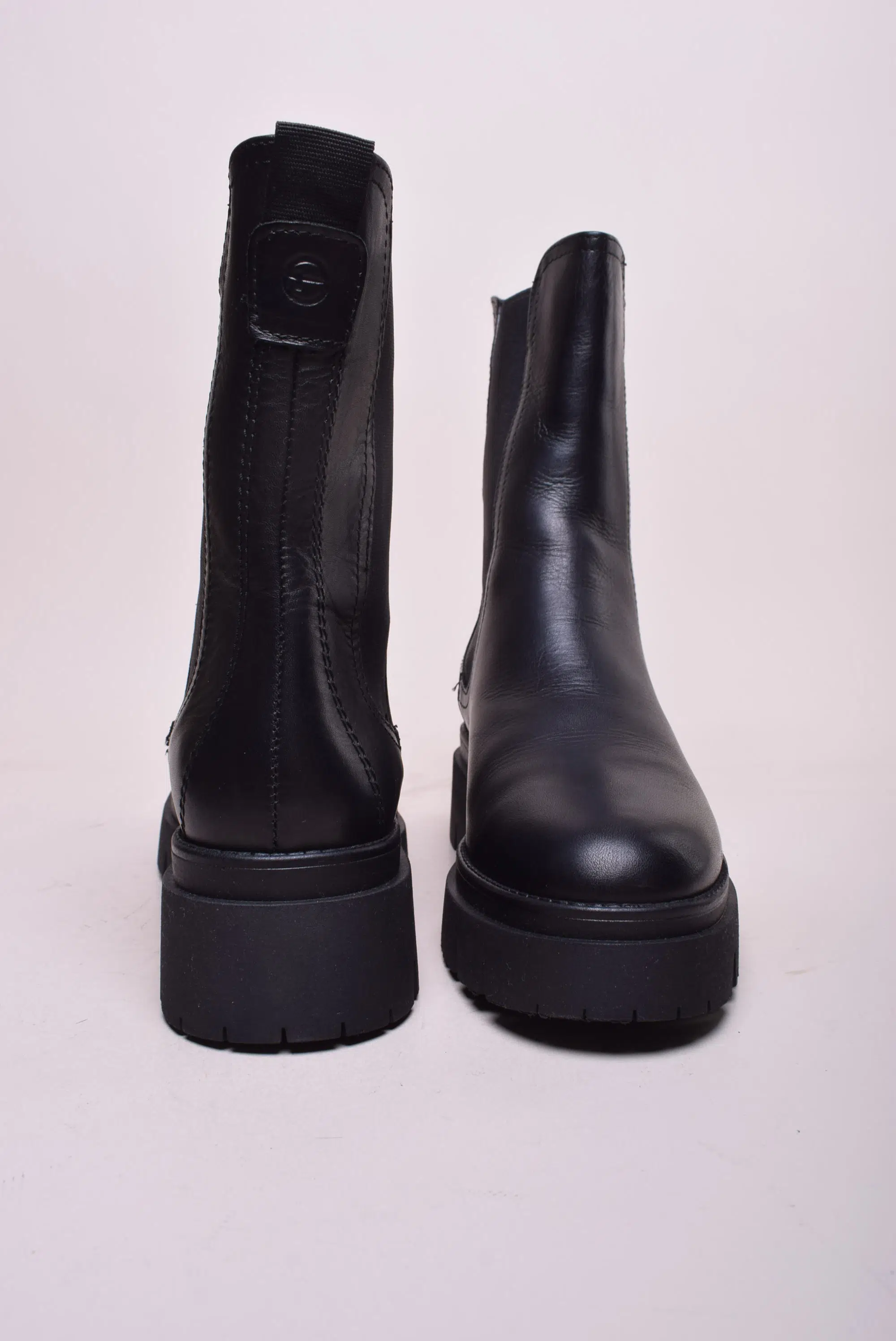 Ghete dama cu platforma Tamaris, Piele naturala, Negru, nr. 40