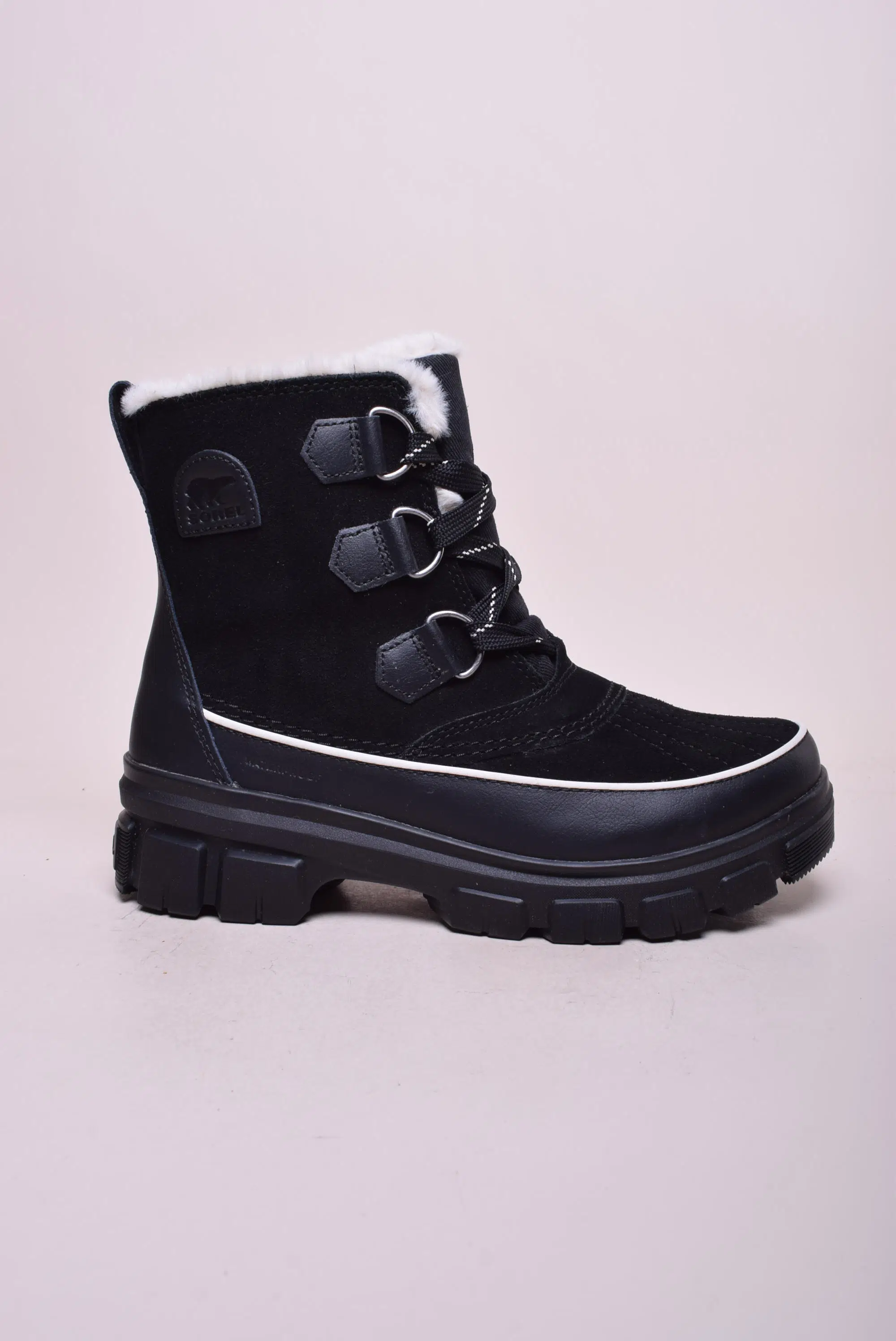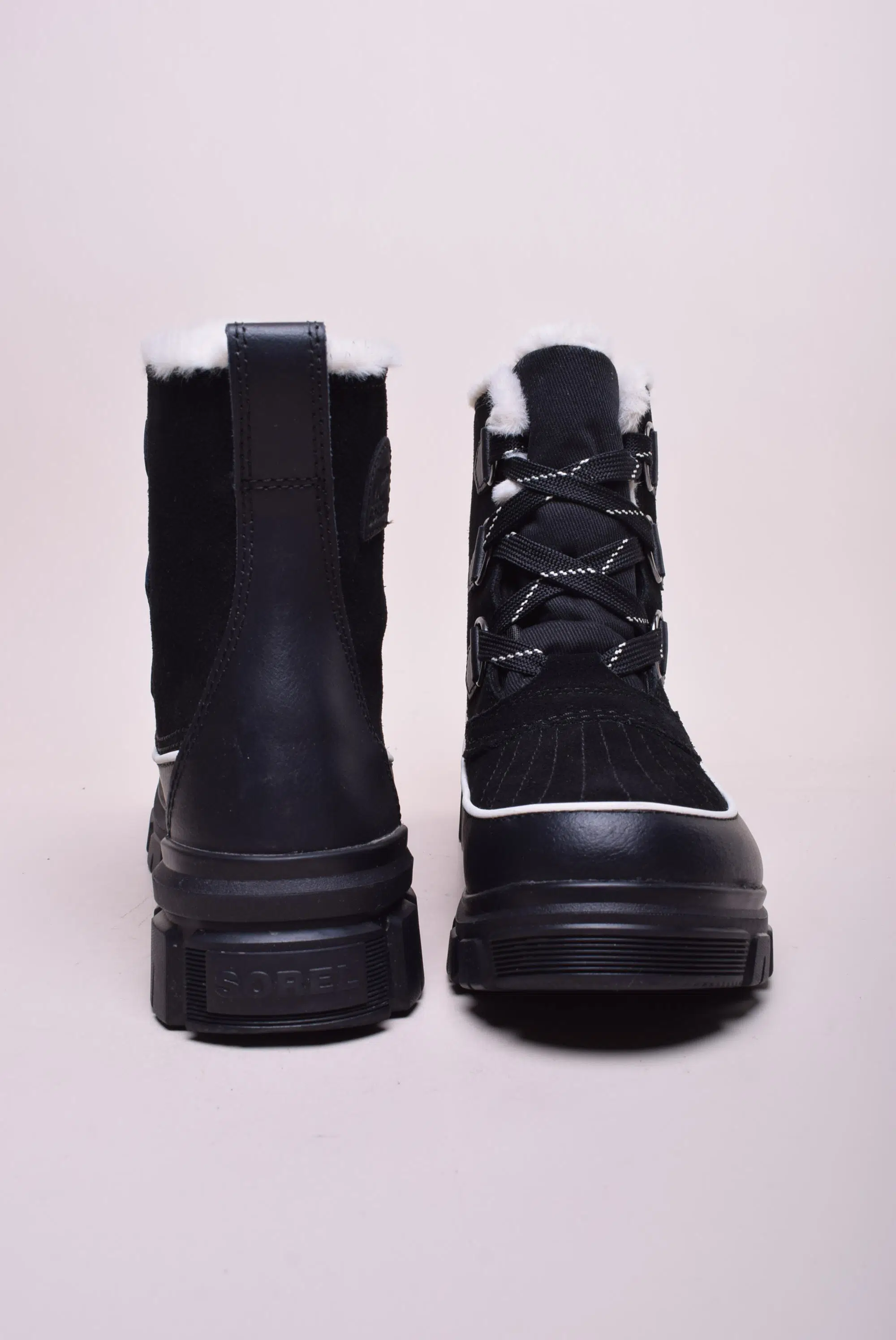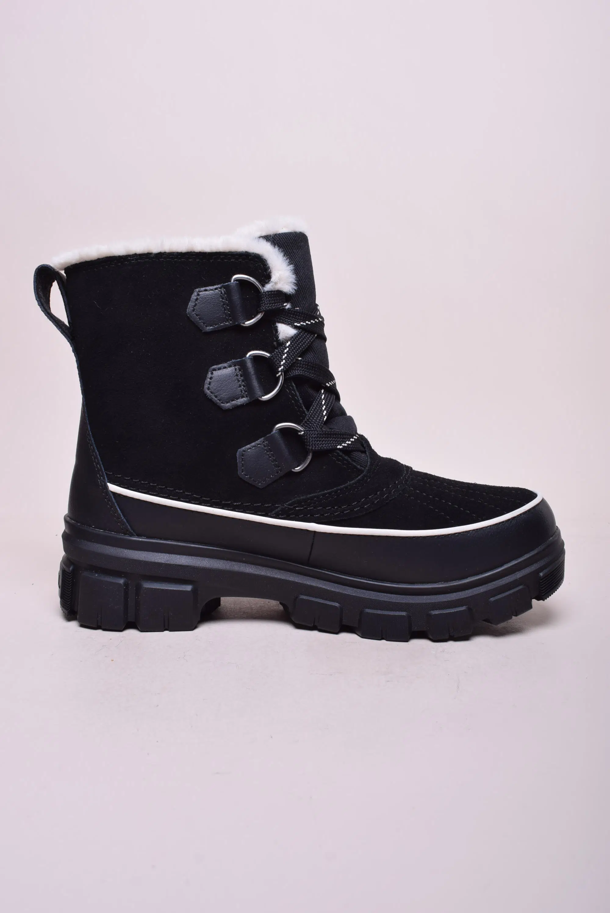 Ghete dama cu platforma, impermeabile Sorel, Piele naturala + alte materiale, Negru, nr. 40