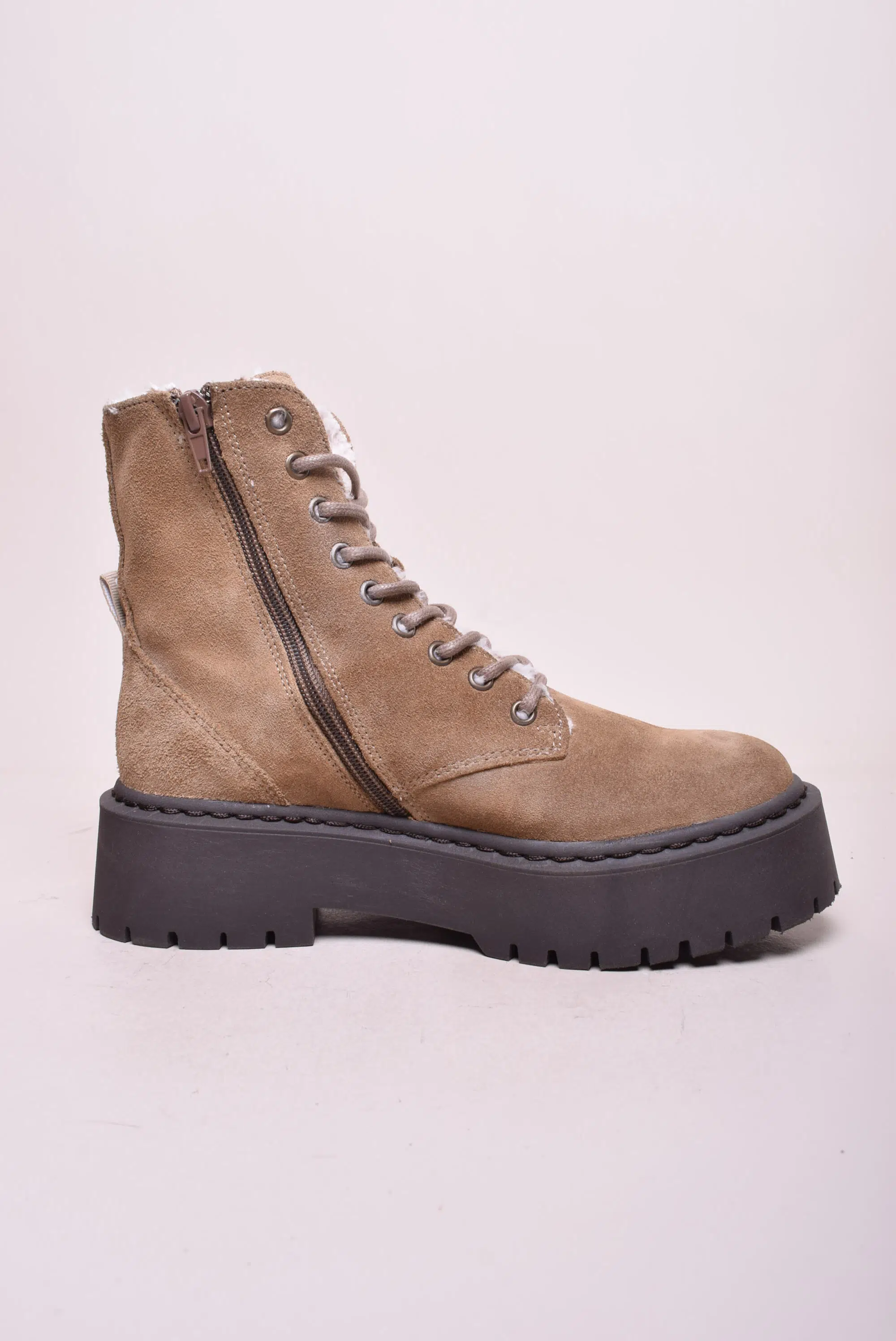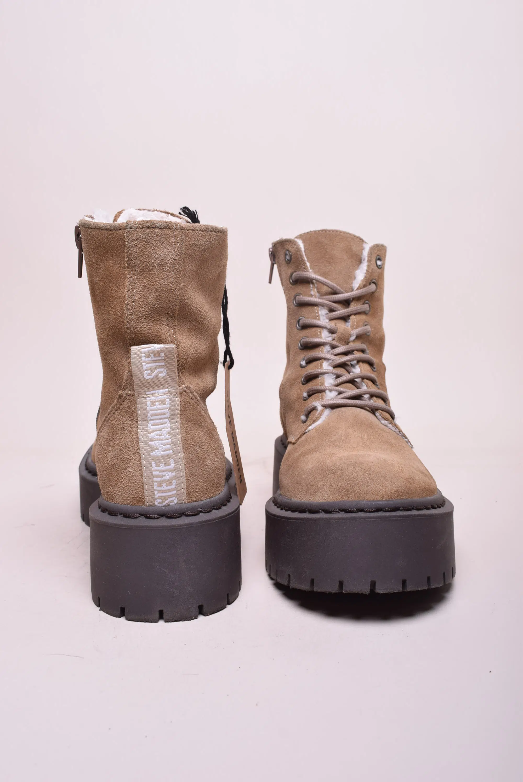 Ghete imblanite dama cu platforma Steve Madden, Piele naturala intoarsa, Maro, nr. 37