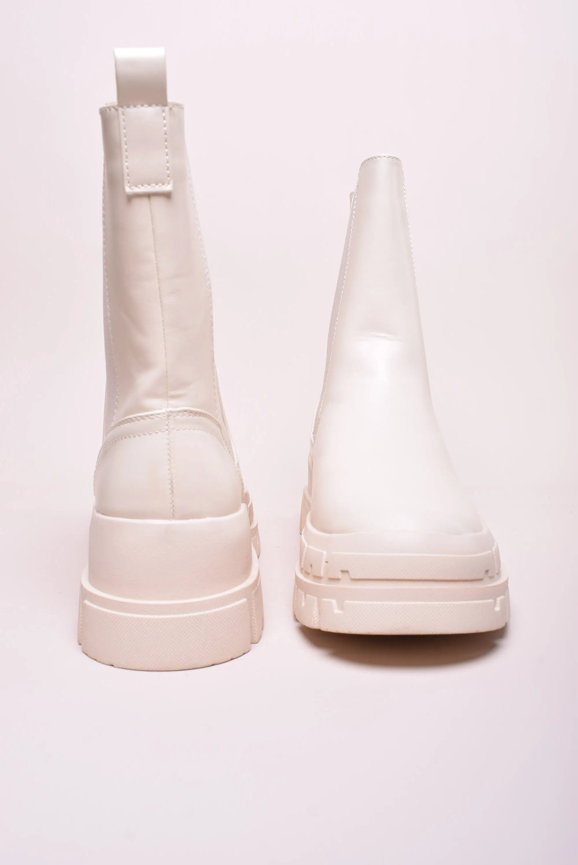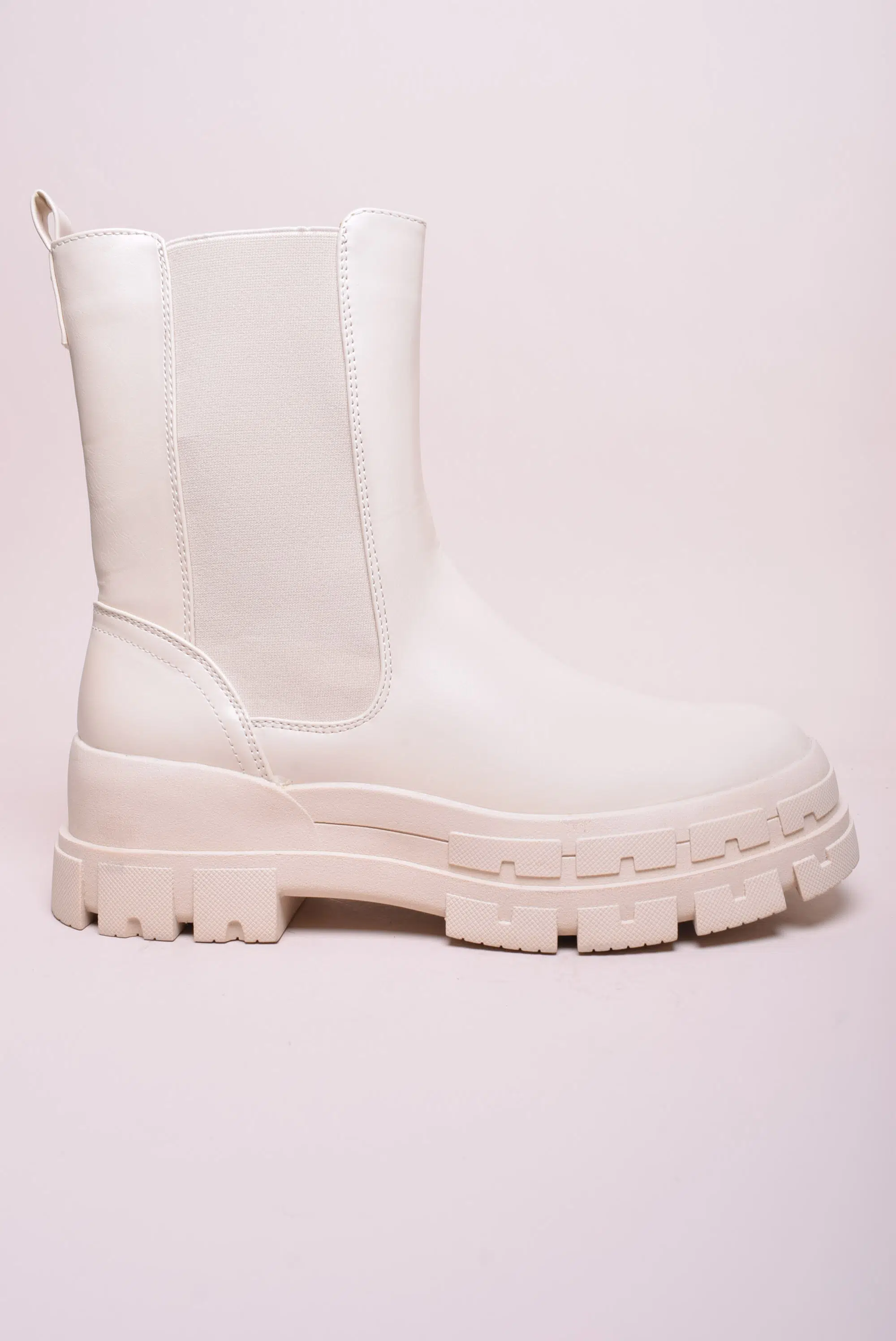 Ghete dama cu platforma Even & Odd, Piele ecologica, Crem, nr. 41
